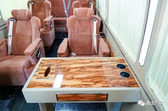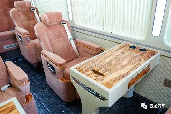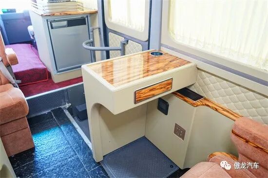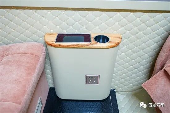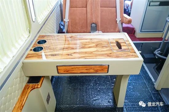 尼桑碧莲Civilian12座定制商务车内饰简约单不简单,同样是搭载了今年***的真皮包覆龙血檀木的主副办公桌;手机无线充电器、车载压缩机冰箱以及车载烧水壶等设备一项也不少。