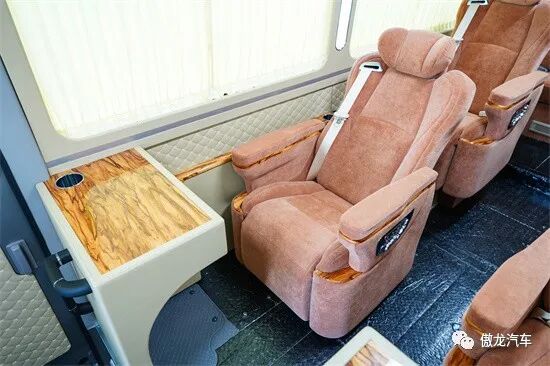 尼桑碧莲Civilian12座定制商务车主打的就是简洁实用风,乘客舱搭载了四张独立航空座椅并且大胆的采用了棕色美国魔术绒的材质进行包裹,这种材质**的优点就是毛茸茸的手感好以及好打理,用湿毛巾同方向擦一遍后自然晾干即可恢复到**状态,侧壁采用了nappa菱形真皮进行包覆,视觉观感以及触摸手感都是**。