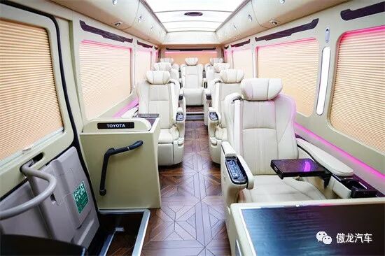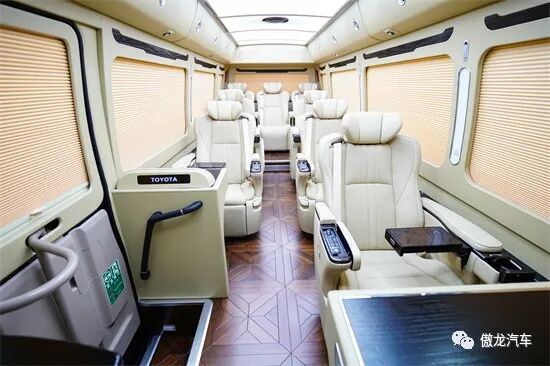丰田考斯特10座黑金版豪华商务车内饰用两个词就能概括,那就豪华和舒适。