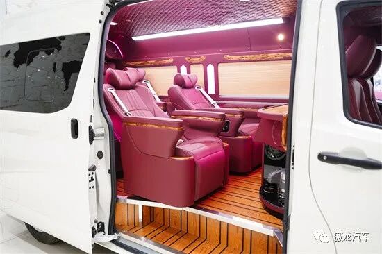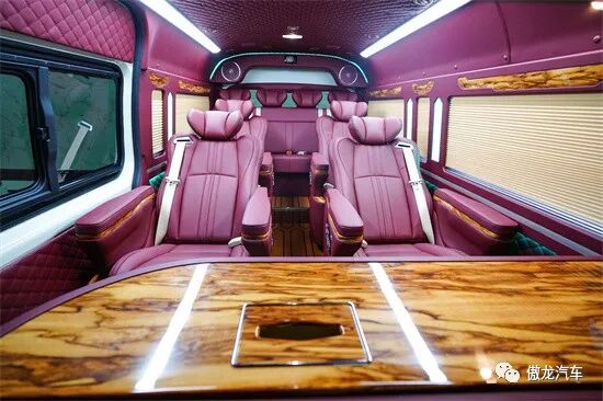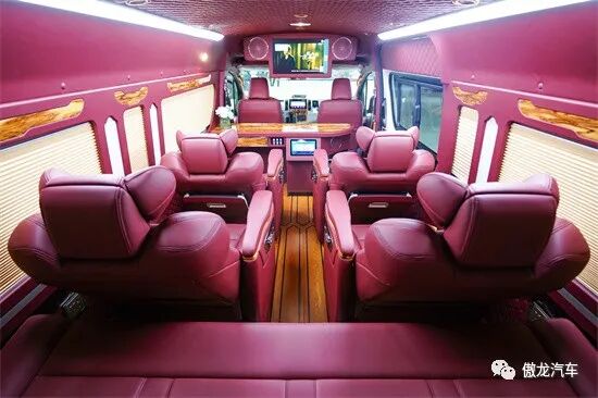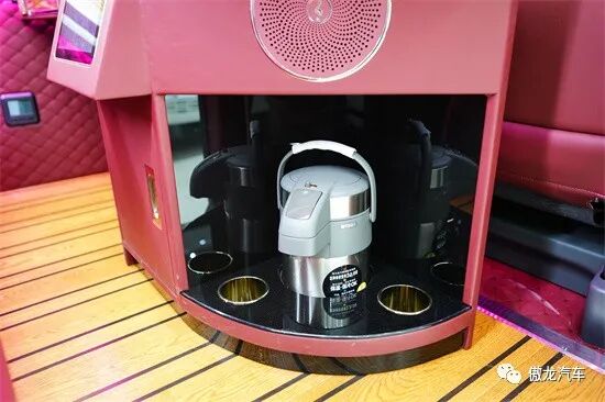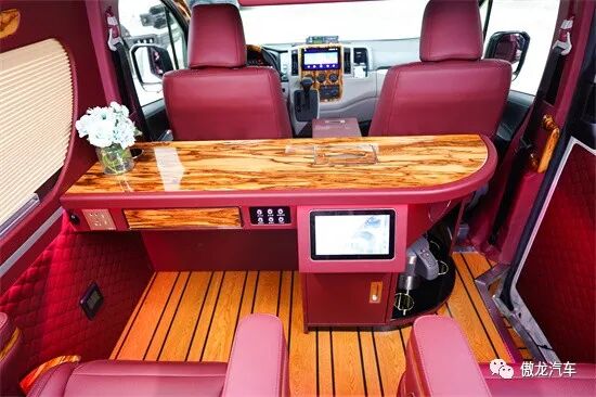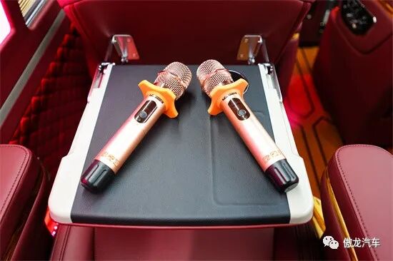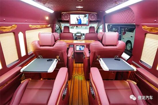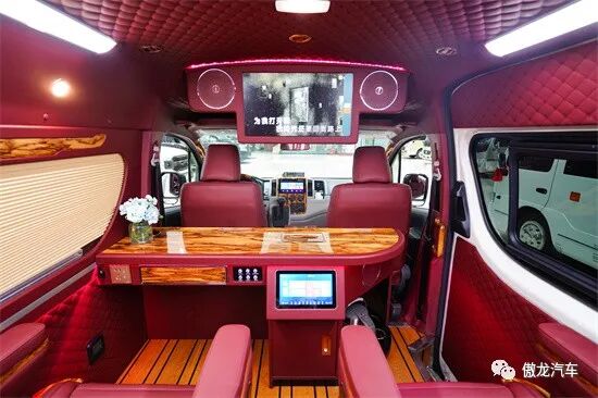 车内设施配置充足,四张豪华航空座椅,可折叠小桌板、高清液晶电视、龙血檀木办公桌、车载烧水壶、车载KTV等配置应有尽有。